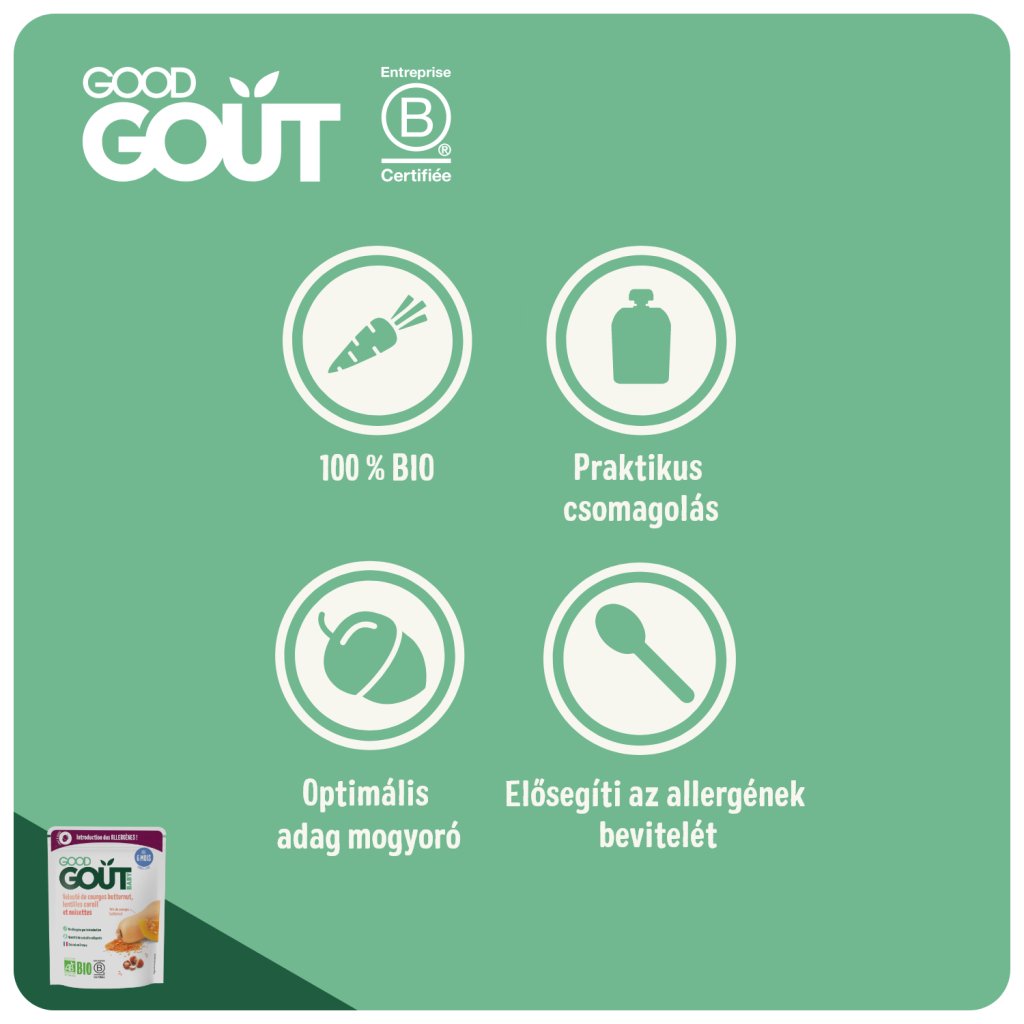 A Good Goutnál szeretjük meglepni a gyerekek ízlését érdekes alapanyagokkal és a természet legjavával! Bár a szabadban gyakran találkozhatunk a mogyoróval, a gyümölcsét ritkán találjuk meg a gyermekétkeztetésben. Ezért találtuk ki azt az ideális ételt, amellyel a babák a 6. hónap végétől megismerkedhetnek kedvenc mogyorójuk édes ízével. Önök, a szülők számára pedig egy újabb allergén kerül a baba étrendjébe.