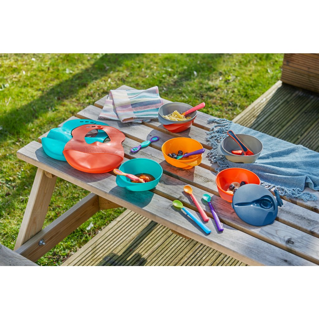 A könnyen megfogható formájú kanalakat 6 hónapos csecsemők etetésére tervezték. Széles és sekély formájuk ideális az első bébiételhez, a kanál puha hegye maximálisan kíméletes a baba érzékeny ínyéhez. A fogantyú alakja alkalmas a gyermekek kezével történő megfogásra is az önálló etetés első kísérletei során. Az anyag ellenáll a harapásnak és a kanál földre esésének. A Bacshield™ antimikrobiális technológia védi a kanál felületét azáltal, hogy akár 99,99%-kal csökkenti a baktériumok számát. Mosogatógépben mosható. A csomag 5 kanálnyit tartalmaz.