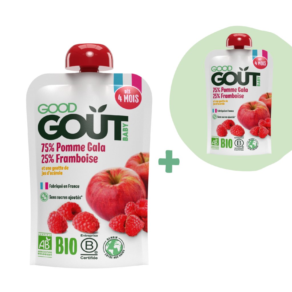 Összetevők: 75% bio Gala alma, 25% bio málna, bio acerola juice koncentrátum. Semmi több. Gluténmentes.