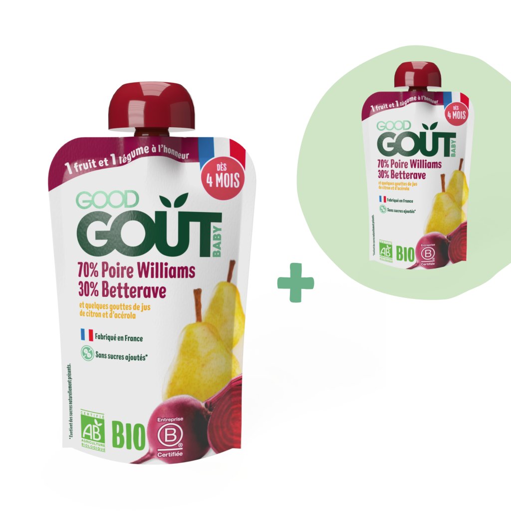 Nagyszerű híreink vannak minden Williams körte hölgy szerelmeseinek! Felöltöztettük egy piros kabátba, ami több mint jól áll neki. Bemutatunk egy új tasakot, amely 70% bio Williams körtét és 30% bio céklát tartalmaz néhány csepp citrom- és acerolalével. Ön alig várja, hogy kipróbálhassa a babájával?