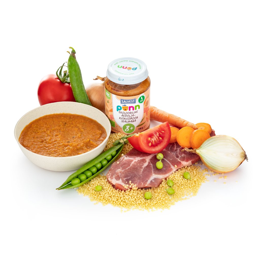 SALVEST Põnn BIO Sertéshús kuszkusszal és zöldséggel (190 g), exp. 4.4.2026