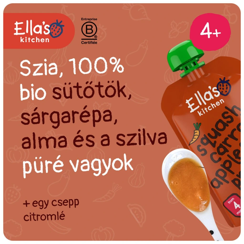 Ella's Kitchen BIO Sütőtök, sárgarépa, alma és szilva (120 g), exp. 30.05.2026