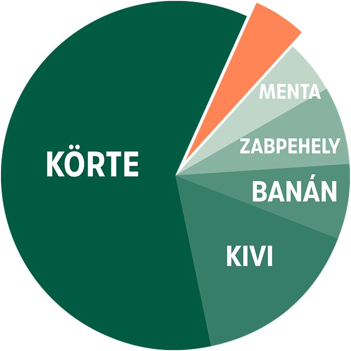 Összetétel: *körtepüré 65%, *kivipüré 20%, *banánpüré, *zabpehely, *menta, *spirulina 0,04%. *biogazdálkodásból.
